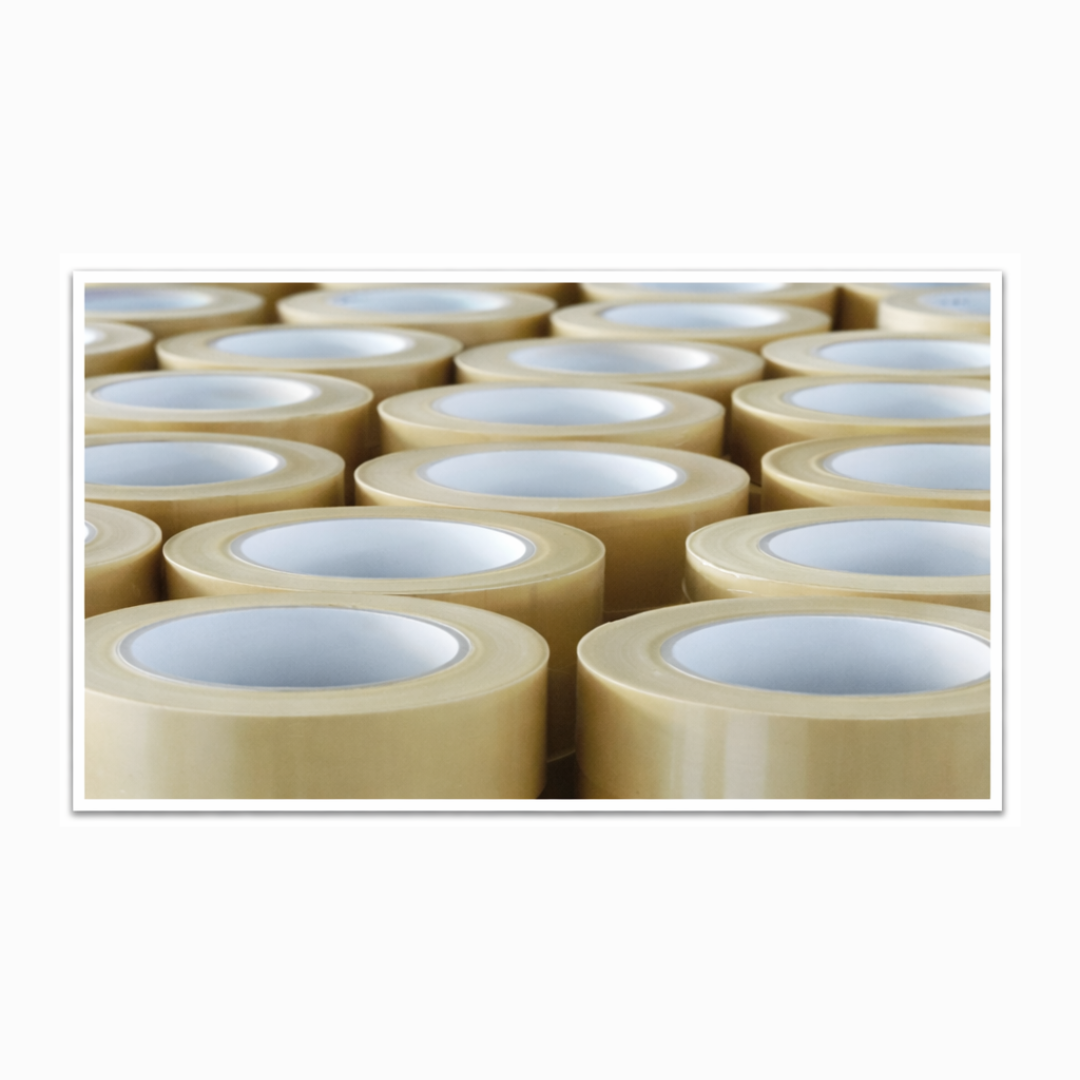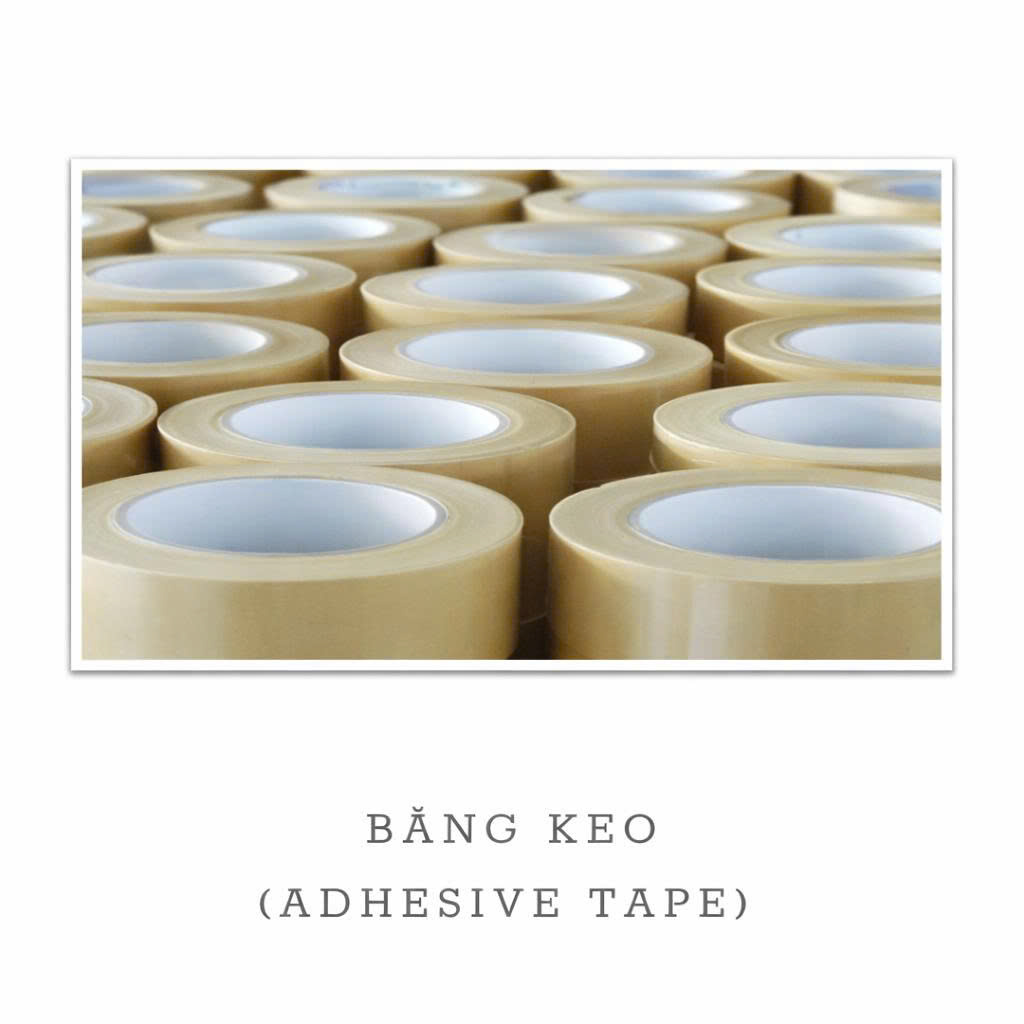 Các loại băng keo nhiệt và băng keo dính phục vụ sản xuất. Quy trình gồm nấu keo, phủ keo, cuộn và cắt tự động. Công suất ~12.000 pcs/ngày