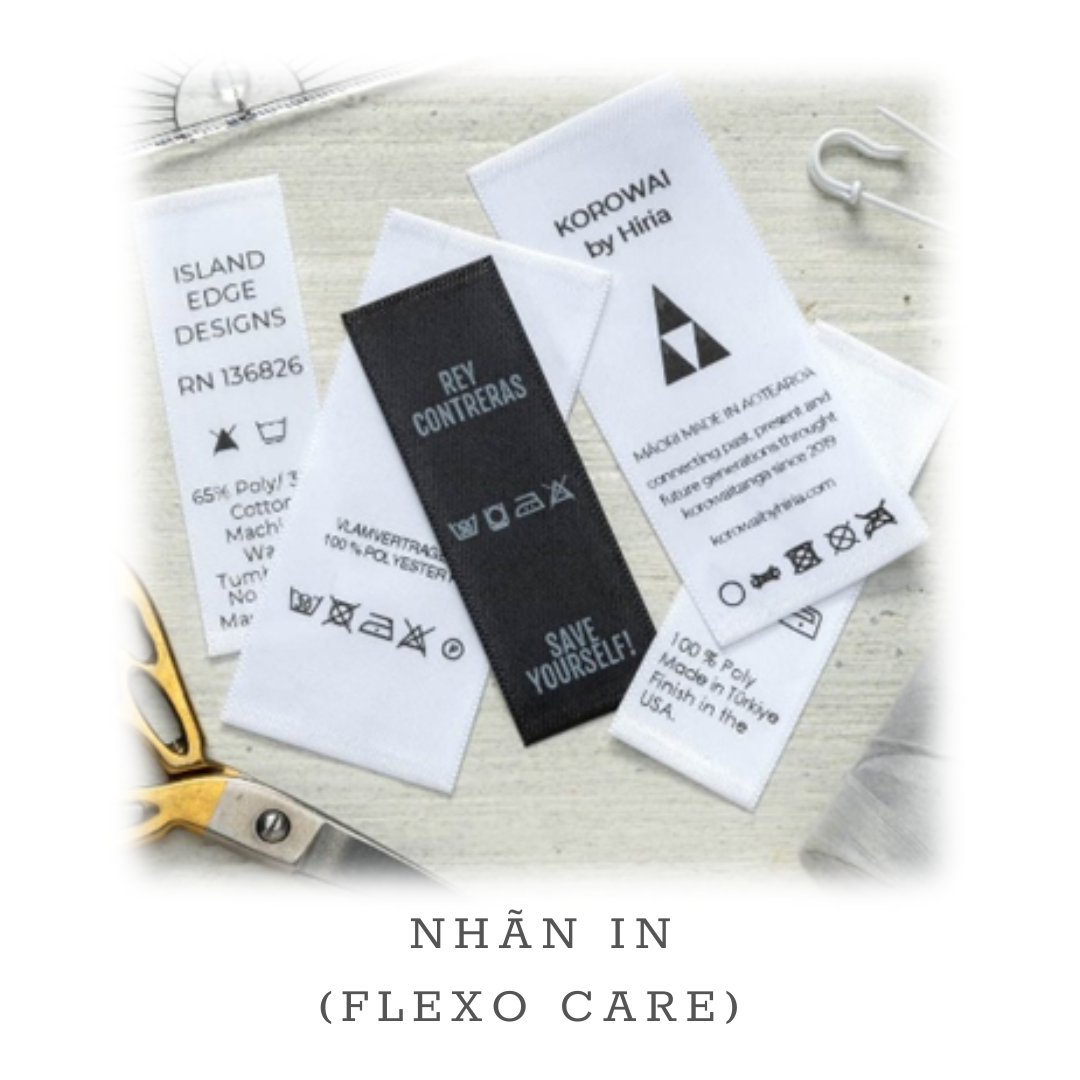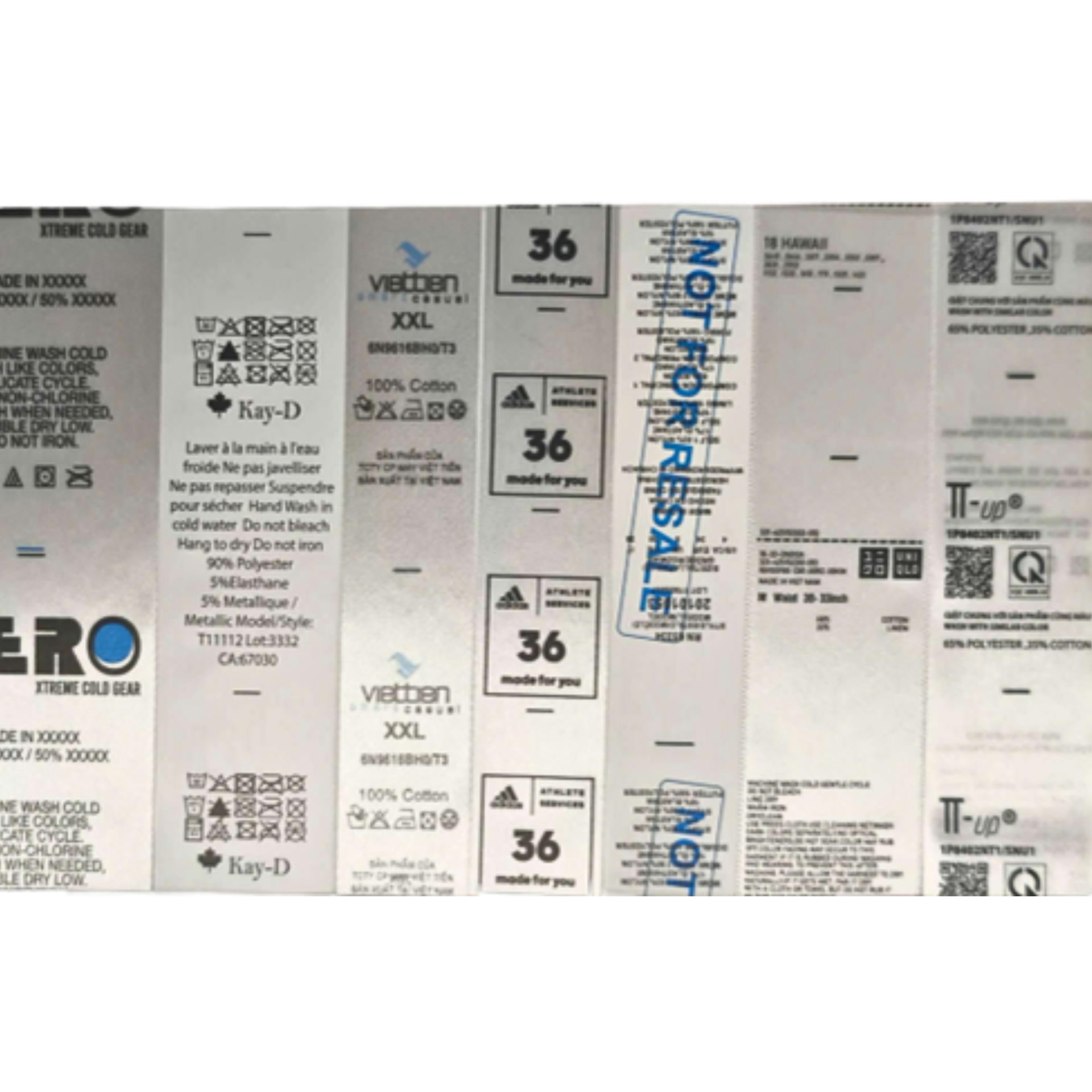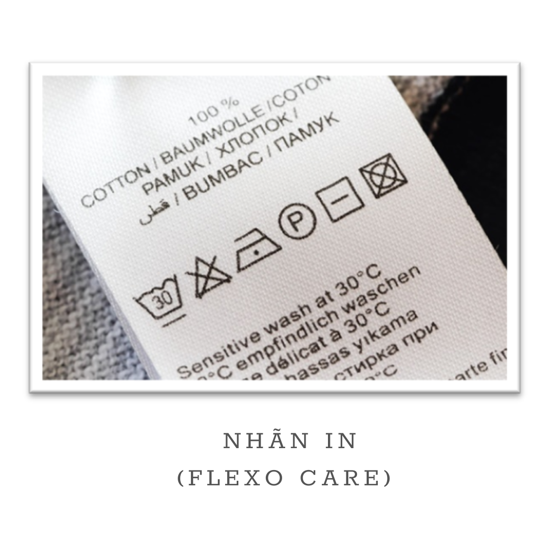 Nhãn hướng dẫn giặt chất lượng cao, sản xuất bằng công nghệ in Flexo hiện đại dạng cuộn với sản lượng lớn, đạt ~3 triệu pcs/ngày.